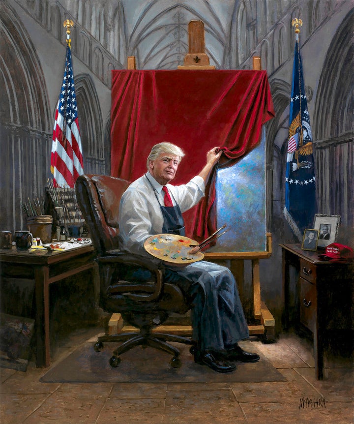And then there's the lighting. If you look at Trump's face and body, the light source seems to be coming from the viewer's right. But if you look at the red curtain, the light is coming from the opposite direction!