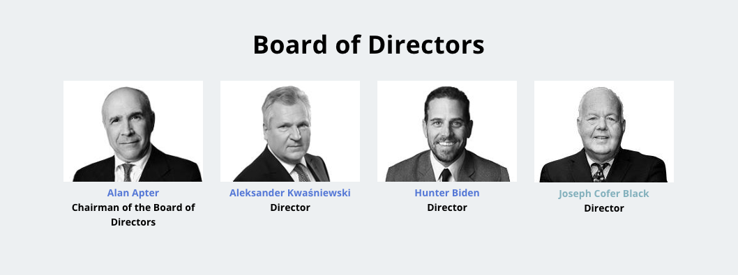 For a brief period, Hunter Biden and Joseph Cofer Black were both listed as Directors of Burisma. Here's an archived image from the company's website: